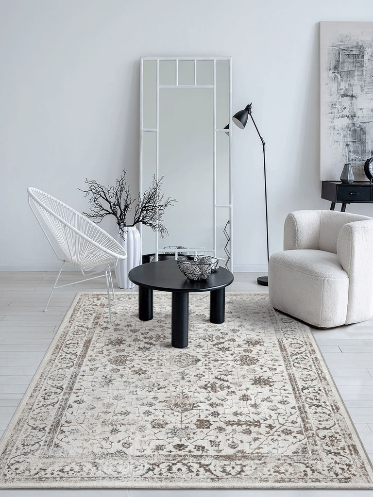 Designer Teppich Merinos Vintage Creme/Beige/Grau